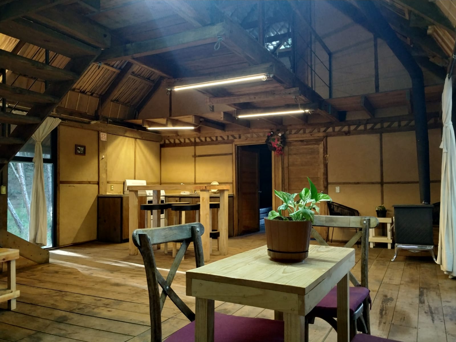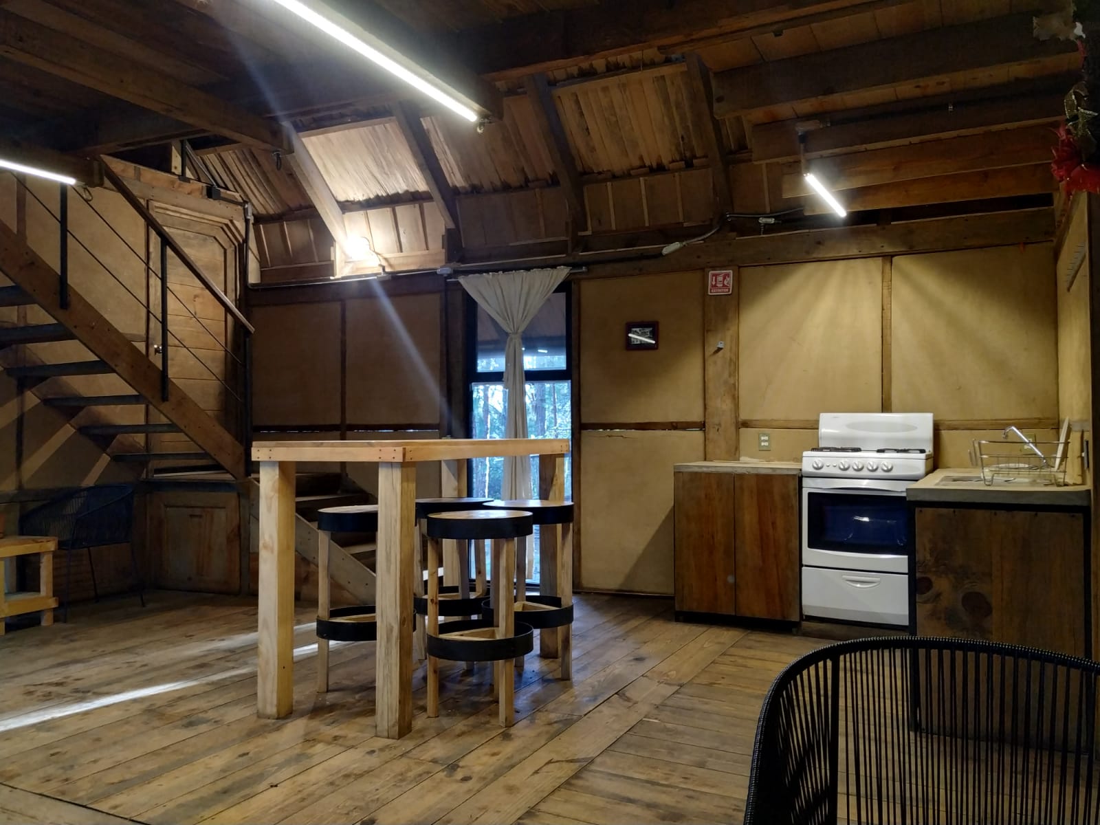 Dos Cocinas: Una con estufa ahorradora de leña y otra grande con gas.